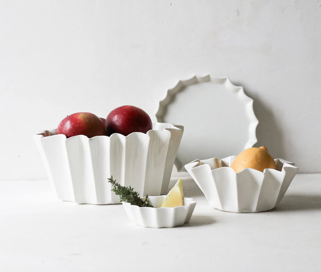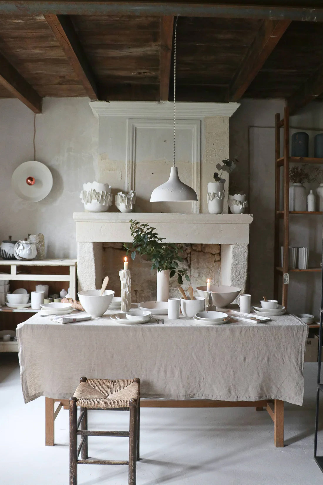 Chaque pièce est façonnée à la main en porcelaine ou en grés dans notre atelier.