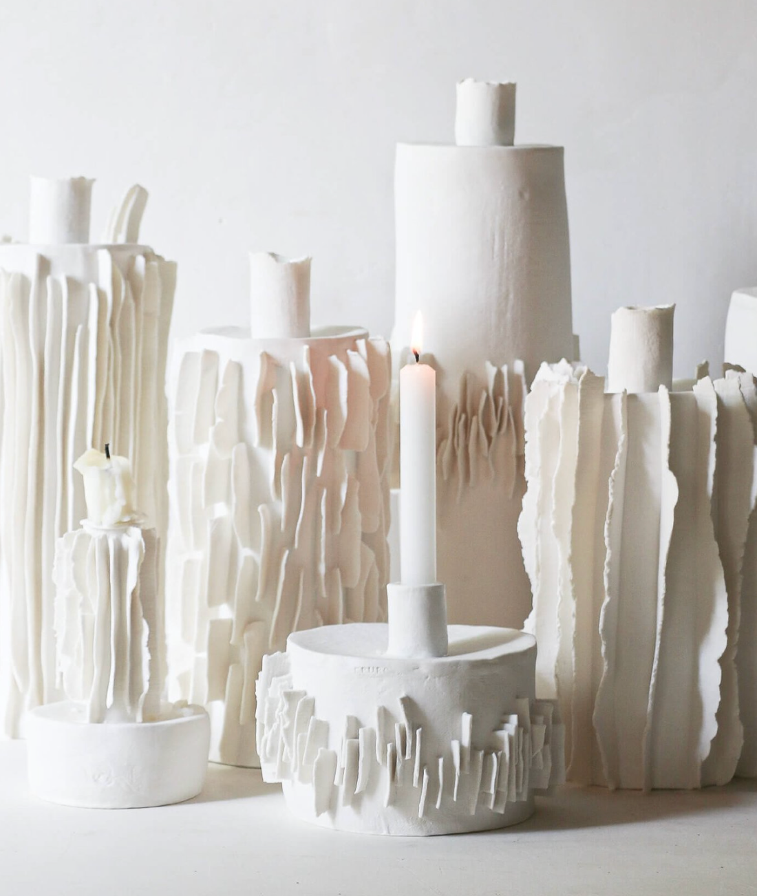 Nous jouons sur le contraste entre la préciosité de la porcelaine et des textures plus rudes, plus brutes, l’élégance primitive guidant nos créations.